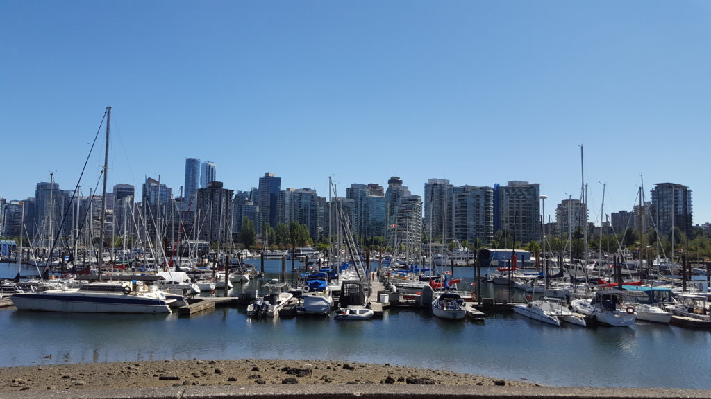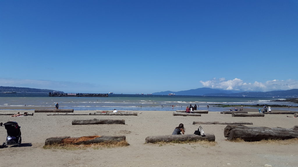 We waren iets voor negenen wakker op deze laatste vakantiedag. We zijn eerst weer naar de supermarkt gegaan om ontbijt te kopen. Na het ontbijt heb ik een wandeling naar het strand (English Bay Beach) gemaakt.